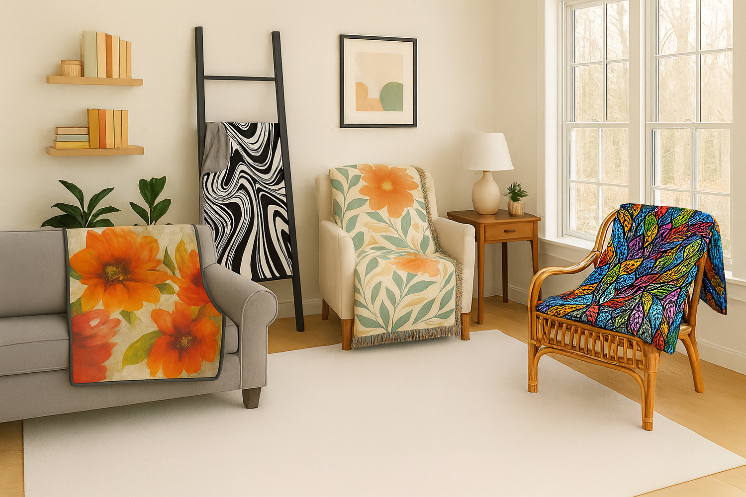 Our blanket collections are as versatile as they are comfortable—use them as wall décor, a cozy sofa throw, or even a picnic spread. Choose from soft woven blankets made of 100% pure cotton with colorful fringed edges, luxurious crushed velvet fleece, or plush fleece sherpa made of 100% polyester. Durable, warm, and stylish—perfect for every occasion.