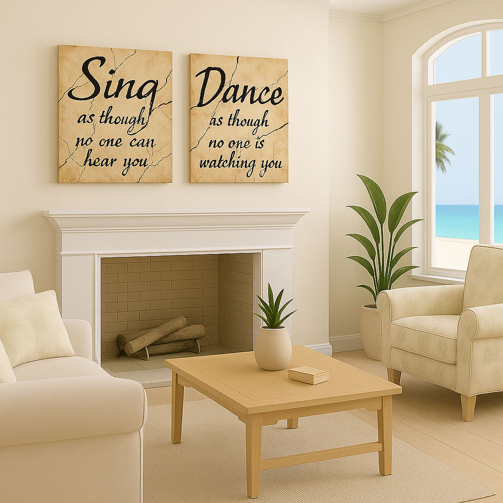 Add timeless inspiration to your space with the matching wall art from the Sing and Dance Vintage Stone-Inspired Bedding and Decor Collection. Designed with the look of aged stone and artistic cracks, each canvas features uplifting calligraphy that reads: